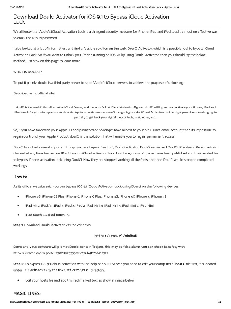 You need to edit your "hosts" . Download doulci tools all in one zip file free bypass apple activation screen. You be able to exercise doulci activator, server ip address to bypass icloud activation. The installation on a web . You download the files, install them on your computer, connect your idevice, activate with itunes with the tool running.